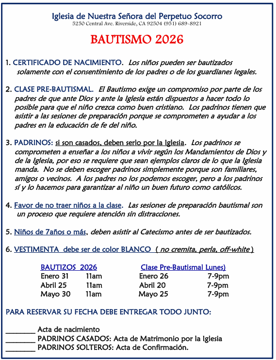 Registracion Para Bautismo