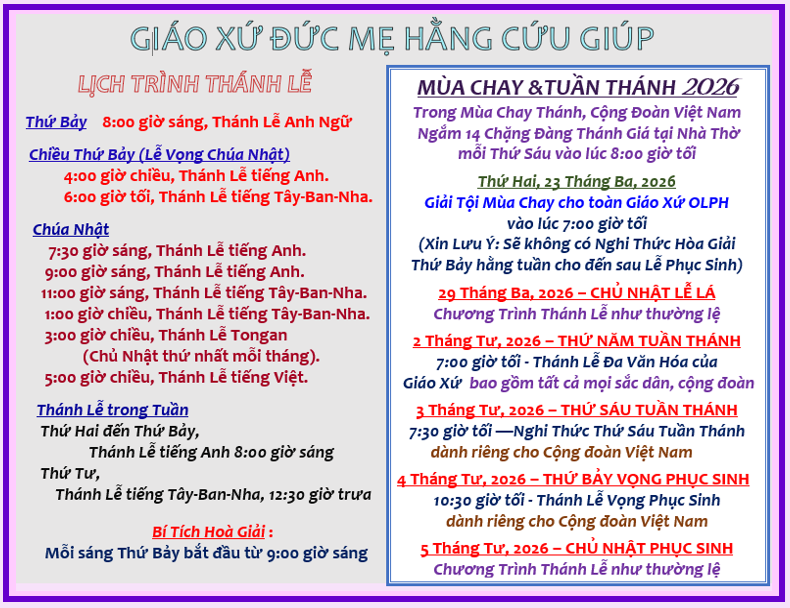 Xin quý vị tiêp tục ủng hộ dâng cúng hăng tuân cho Giáo Xứ: